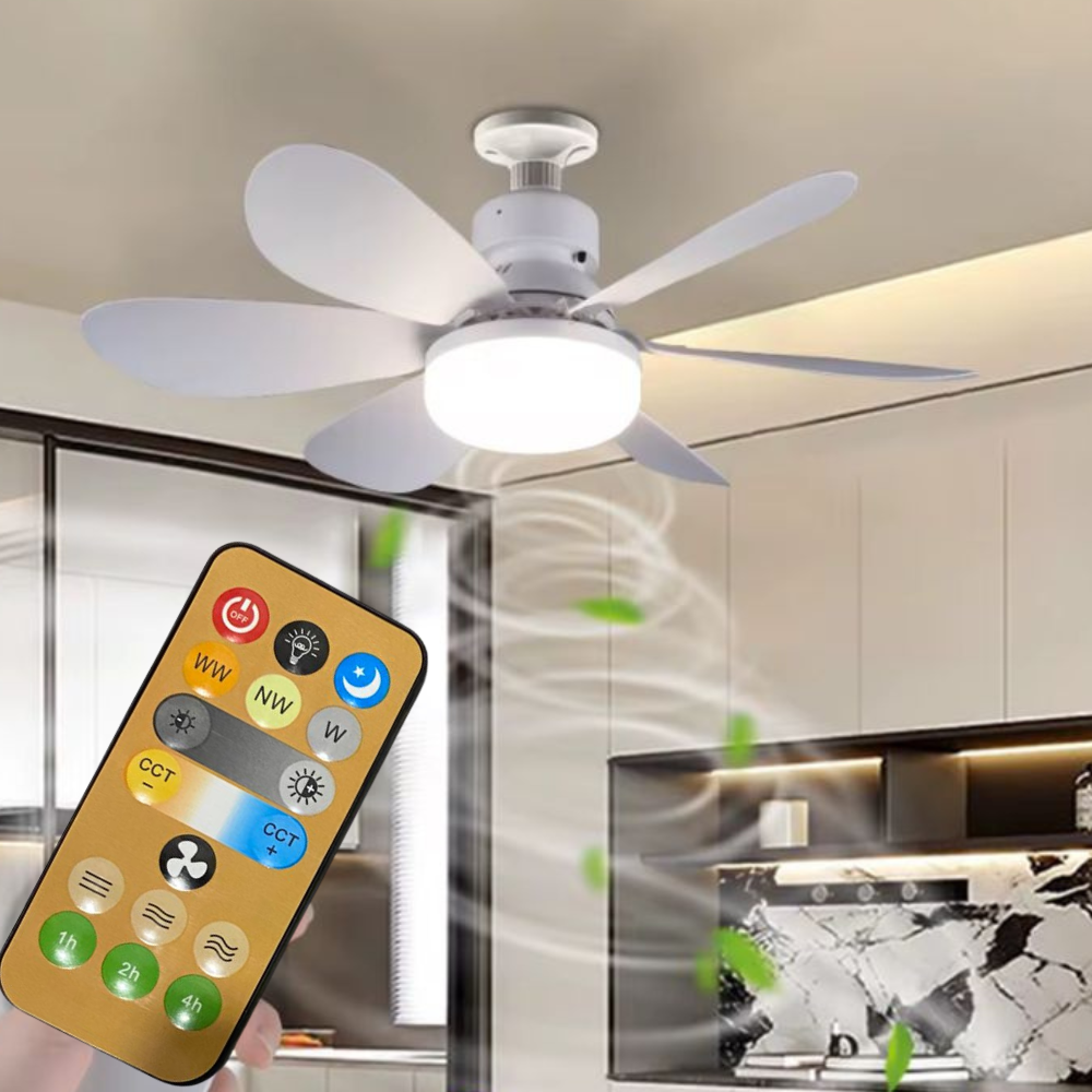 Ventilador de Teto 80w 5 Par Super LED Lâmpada Com 3 Cor E27 Controle Remoto Economica Bivolt 110v-220v