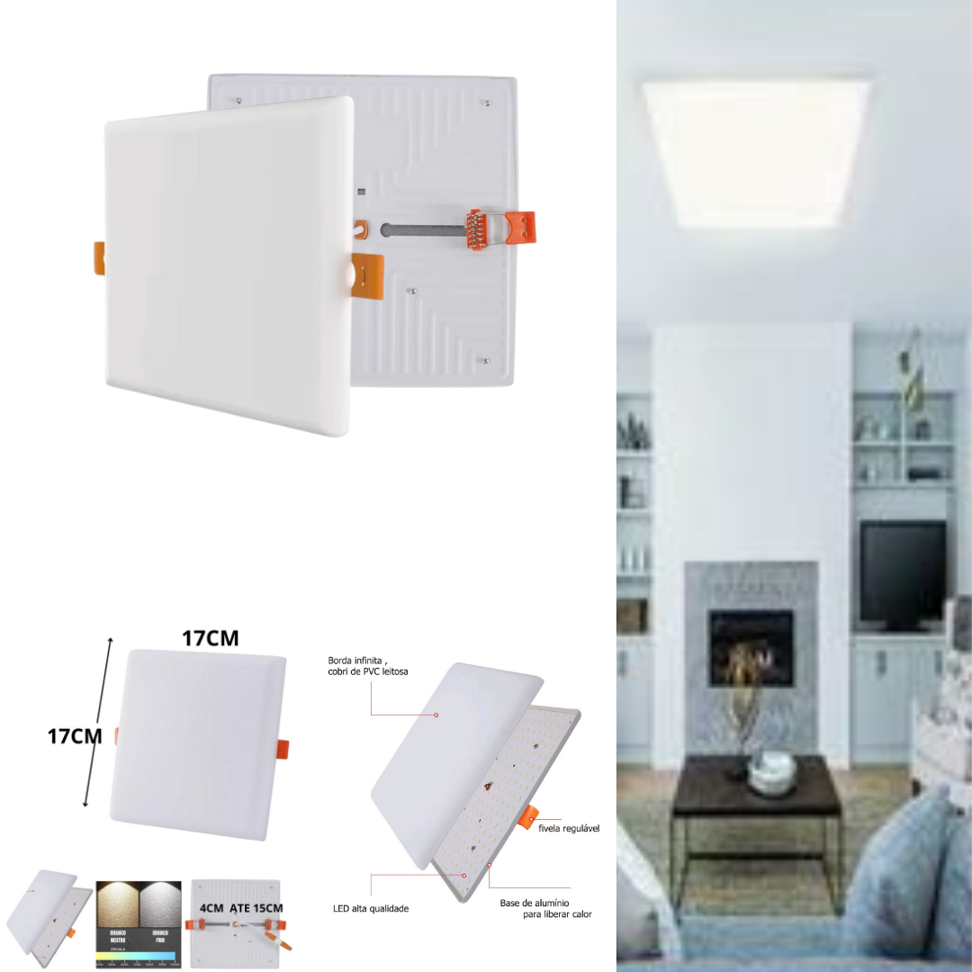 Plafon Led Borda Infinita 25w Embutir Quadrado 17cmx17cm Bivolt 98v-220v Branco Frio 6500KPrimerio linha com 100% led de lumen 2100lm